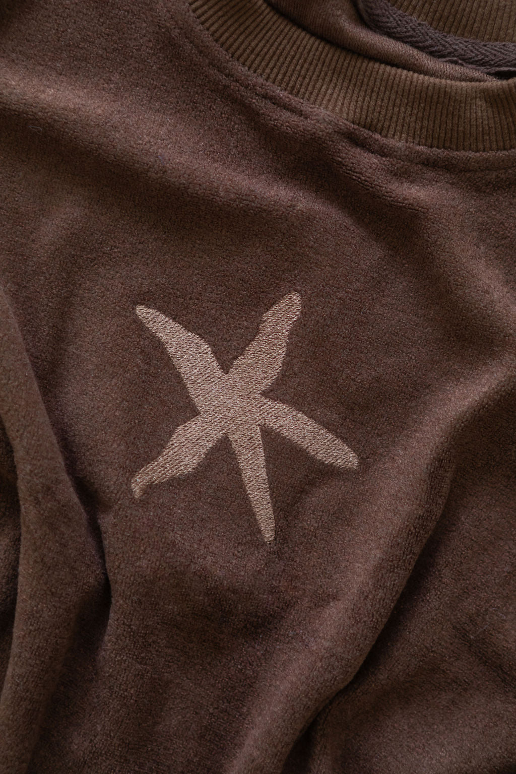 Terry Romper by Belle & Sun, designed for comfort and everyday wear. Made from lightweight Terry Cotton and featuring sea star embroidered motif at the front, functioning snaps at crotch for easy changes