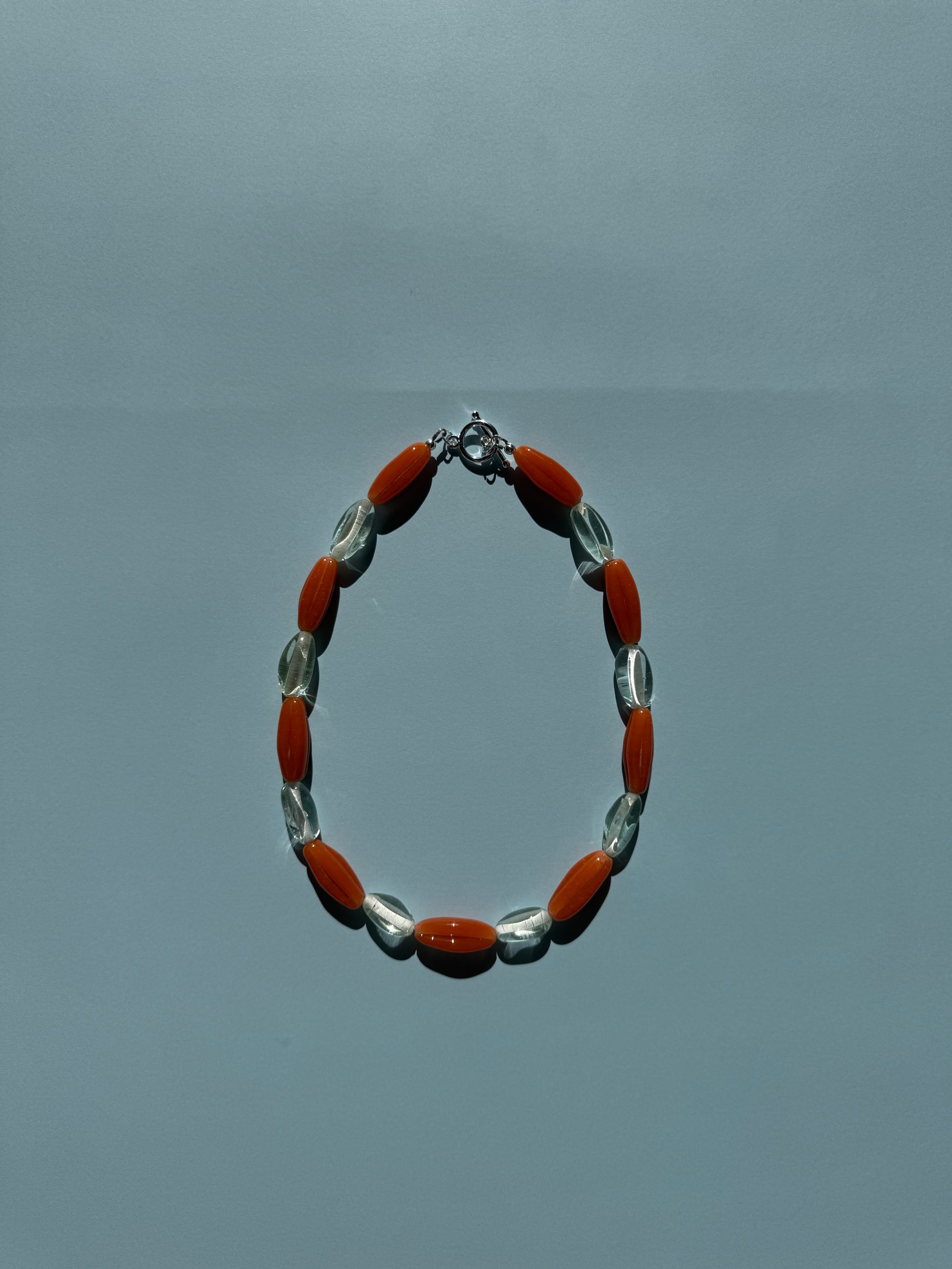 Each piece is made slowly by hand, using a mix of glass and feature beads, finished with a considered clasp.