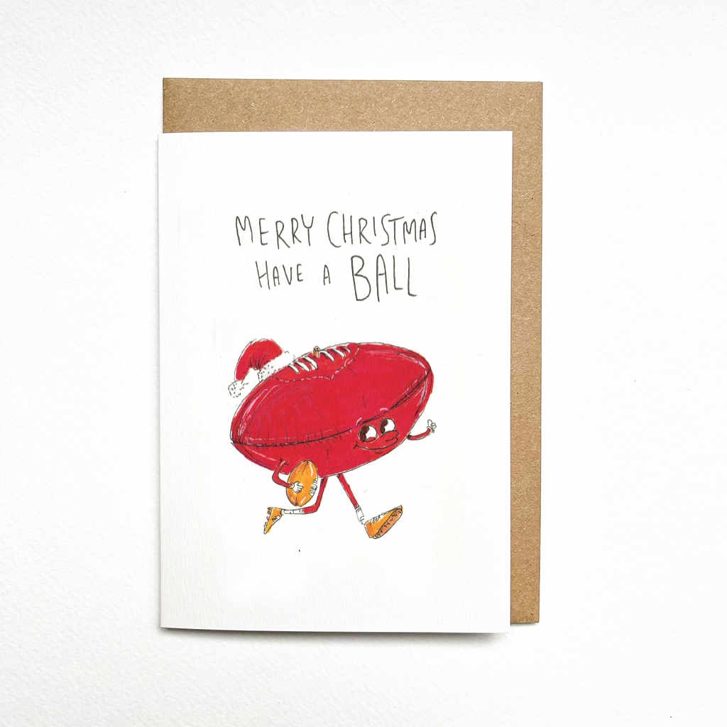🏉 Merry Christmas, Have a Ball Description: Pass some joy and kick off the season with our “Merry Christmas, Have a Ball” card.