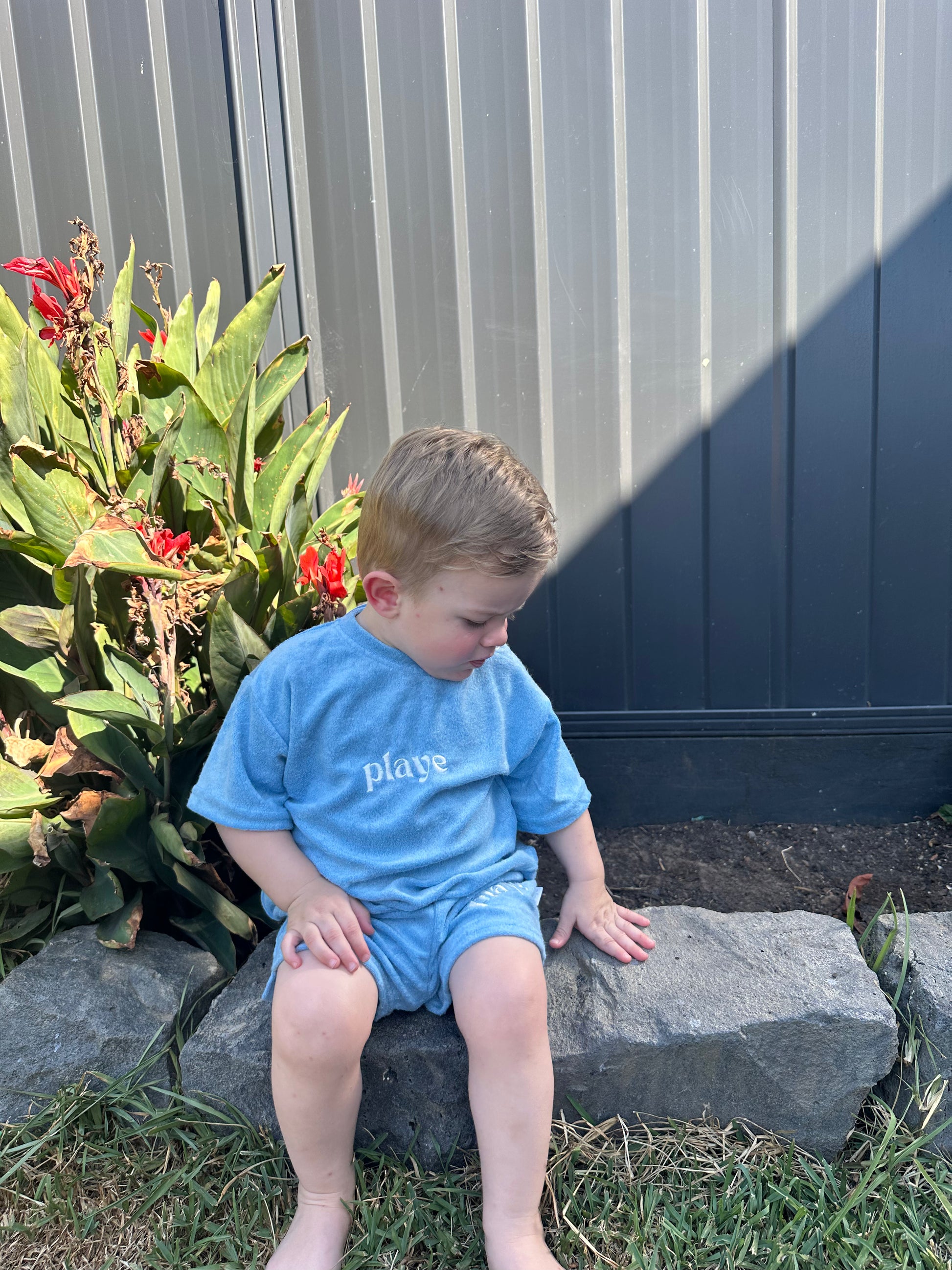 The perfect post swim fit. Incredibly soft, featuring 2 snap buttons on tee for easy changing and embroided Playe logo. Pair it with the matching short in pool blue for vacay time!