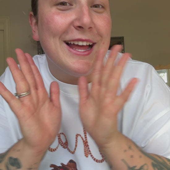 Your new fav oversized tee. Perfect for your mama uniform! Pair with bike shorts, a mini skirt or striped pants. We recommend upsizing for an oversized look, especially sizes L and up.